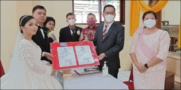 Ikut menjadi saksi dalam pernikahan ini Ny Rembang-Juliwati, Sekretaris TP-PKK Kabupaten Minahasa Selatan.