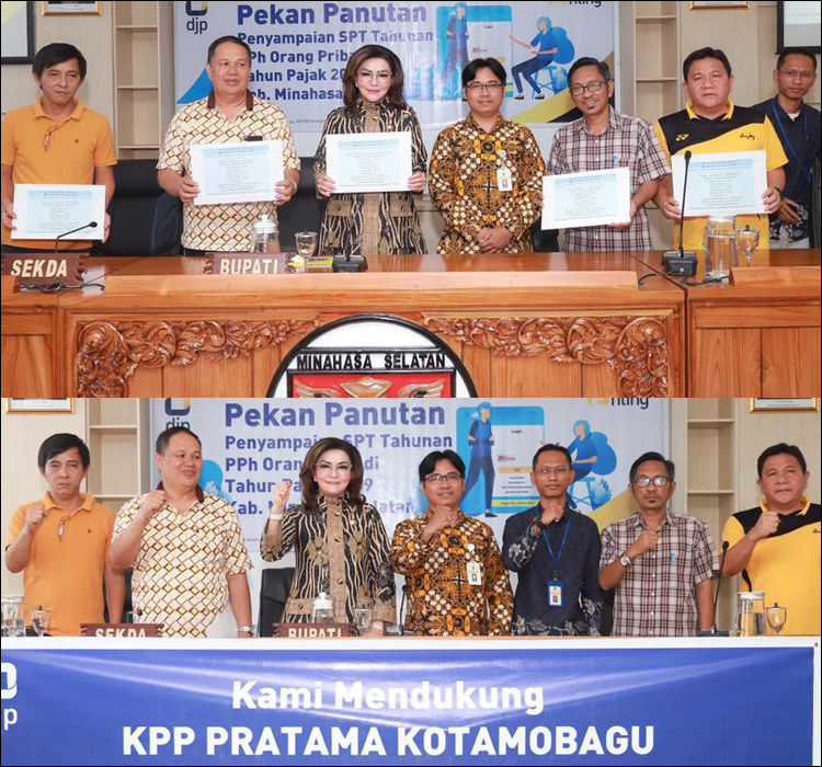 BUPATI Christiany Eugenia Paruntu menghadiri Pekan Panutan Penyampaian SPT Tahunan PPH Orang Pribadi Tahun Pajak 2019 yang dilaksanakan di lantai 4 kantor bupati, Jumat (21/02/2020).