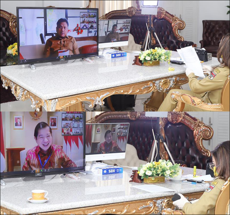 MUSYAWARAH Rencana Pembangunan Rencana Kerja Perangkat Daerah (Musrenbang RKPD) Pemerintah Provinsi Sulawesi Utara yang dilakukan secara virtual turut diikuti Bupati Minahasa Selatan Christiany Eugenia Paruntu didampingi Sekretaris Daerah dan Kepala Bapelitbang serta jajaran, 28 April 2020.