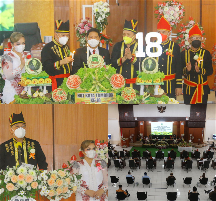 Selain upacara juga digelar Rapat Paripurna Dewan Perwakilan Rakyat Daerah (DPRD) Kota Tomohon. “Berbagai catatan sejarah telah digoreskan dan dilewati sehingga patut disyukuri dan diperoleh karena anugerah dari Tuhan Yang Maha Kuasa. Dari faktor usia, memang baru menanjak dewasa namun capaian pembangunan dangan prestasi yang diraih berjalan bersamaan. Hal ini merupakan hasil dari kerja keras dan sinergitas yang tinggi antara eksekutif, legislatif dan masyarakat bersama lembaga terkait lainnya. Dengan memperingati Hari Jadi ke-18 Kota Tomohon, kita berharap dapat membuat kesadaran tentang sejarah Kota Tomohon, dalam menumbuhkembangkan rasa persatuan dan kesatuan serta mempertinggi kebanggaan daerah, memperkokoh kebanggaan kita semua sebagai warga masyarakat Tomohon,” kata Eman seraya menyebut tema HUT pada tahun ini adalah Bergandengan Tangan Lawan Covid-19, Kita Lanjutkan Pemerintahan, Pembangunan dan Pelayanan Kemasyarakatan Untuk Kota Tomohon Semakin Maju dan Sejahtera.