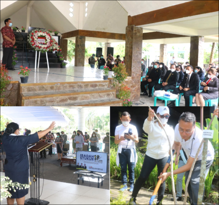 Selain dua kegiatan tersebut, rangkaian HUT ke-18 Kota Tomohon diawali dengan pemeriksaan rapid test dan senam zumba, penanaman pohon serta pemukulan tetengkoren yang dilaksanakan di Taman Wisata Alam (TWA) Kota Tomohon, Jumat (22/01/2021) dengan mematuhi protokol kesehatan Covid-19 ketat. Ada juga ziarah ke makam mantan Bupati Minahasa dan mantan Wali Kota Tomohon dipimpin Wali Kota Jimmy Eman SE Ak CA bersama Wakil Wali Kota Syerly Sompotan, Selasa (26/01/2021). Dan akhirnya ditutup dengan ibadah syukur dan penutupan rangkaian kegiatan dimana ibadah dipimpin Pdt Silvana Lily Marleen-Tuwaidan MTh di Lobby Mal Pelayanan Publik Wale Kabasaran Kamis (28/01/2021). “Kami ucapkan terima kasih dan penghargaan yang tinggi kepada panitia pelaksana serta hamba Tuhan yang telah memberi diri dalam pelayanan lewat puji-pujian, doa dan pelayanan firman Tuhan. Untuk itu, dengan penuh keyakinan saya berharap agar kita selalu bersyukur dalam segala hal karena itulah yang dikehendaki Tuhan sambil mengingat Mazmur 133: 1 & 3b Sungguh, alangkah baiknya dan indahnya, apabila saudara-saudara diam bersama dengan rukun! Sebab ke sanalah Tuhan memerintahkan berkat, kehidupan untuk selama-lamanya,” ungkap Wali Kota Jimmy Eman SE Ak CA. (advetorial)