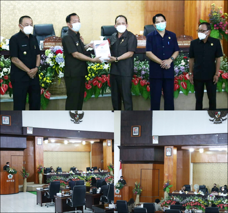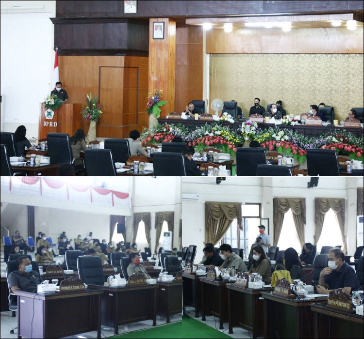 KETUA DPRD Kota Tomohon Djemmy Sundah SE didampingi Wakil Ketua Drs Johny Runtuwene DEA dan Erens Kereh AMKL memimpin Rapat Paripurna Penjelasan Wali Kota Tomohon mengenai Rancangan Peraturan Daerah Laporan Pertanggungjawaban Pelaksanaan Anggaran Pendaptan dan Belanja Daerah tahun anggaran 2020 Kota Tomohon dihadiri langsung Wali Kota Caroll Senduk SH didampingi Wakil Wali Kota Wenny Lumentut SE, para anggota dewan, sekretaris daerah dan Jajaran Pemerintah Kota Tomohon, Selasa (08/06/2021).